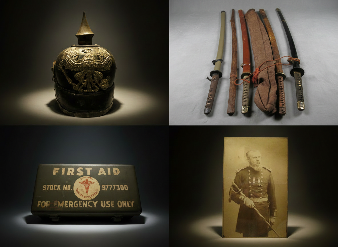 Swords, Civil War documents, WWII helmets, 1,000 plus military books, manuals & unit histories and many more genuine artifacts. Explore and…